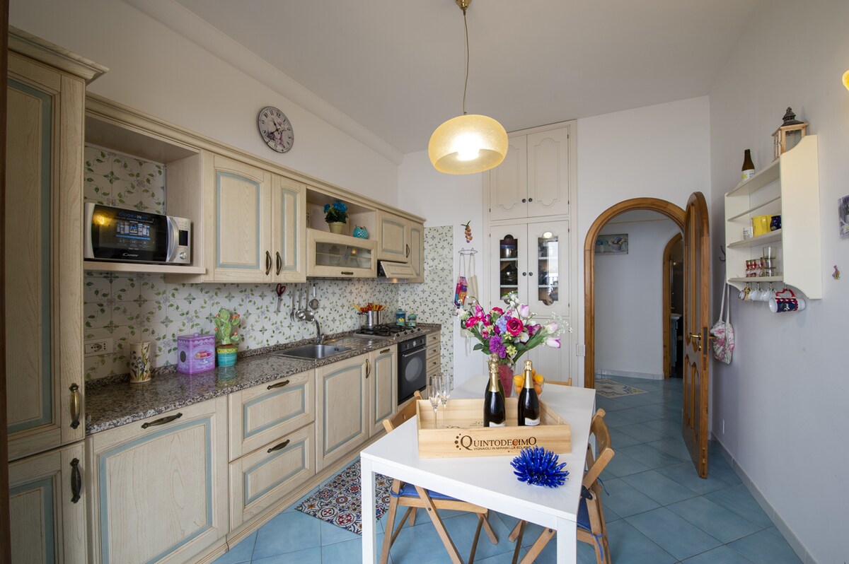 Prekrasan stan na otvorenom sa terasom i predivnim pogledom na Positano i Amalfitansku obalu. Nalazi se u gradu, u blizini mnogih sadržaja, namirnica, prodavnica, plaža i restorana. Glavna plaža Positano i plaža Fornillo udaljeni su samo 15 minuta hoda. Lokalni autobus i autobuske stanice Sita su odmah ispred kuće. Tu je i velika spavaća soba sa terasom, dnevni boravak sa udobnim kaučem na razvlačenje i izlazom na terasu, kuhinja i trpezarija, kupatilo sa tuš kabinom.