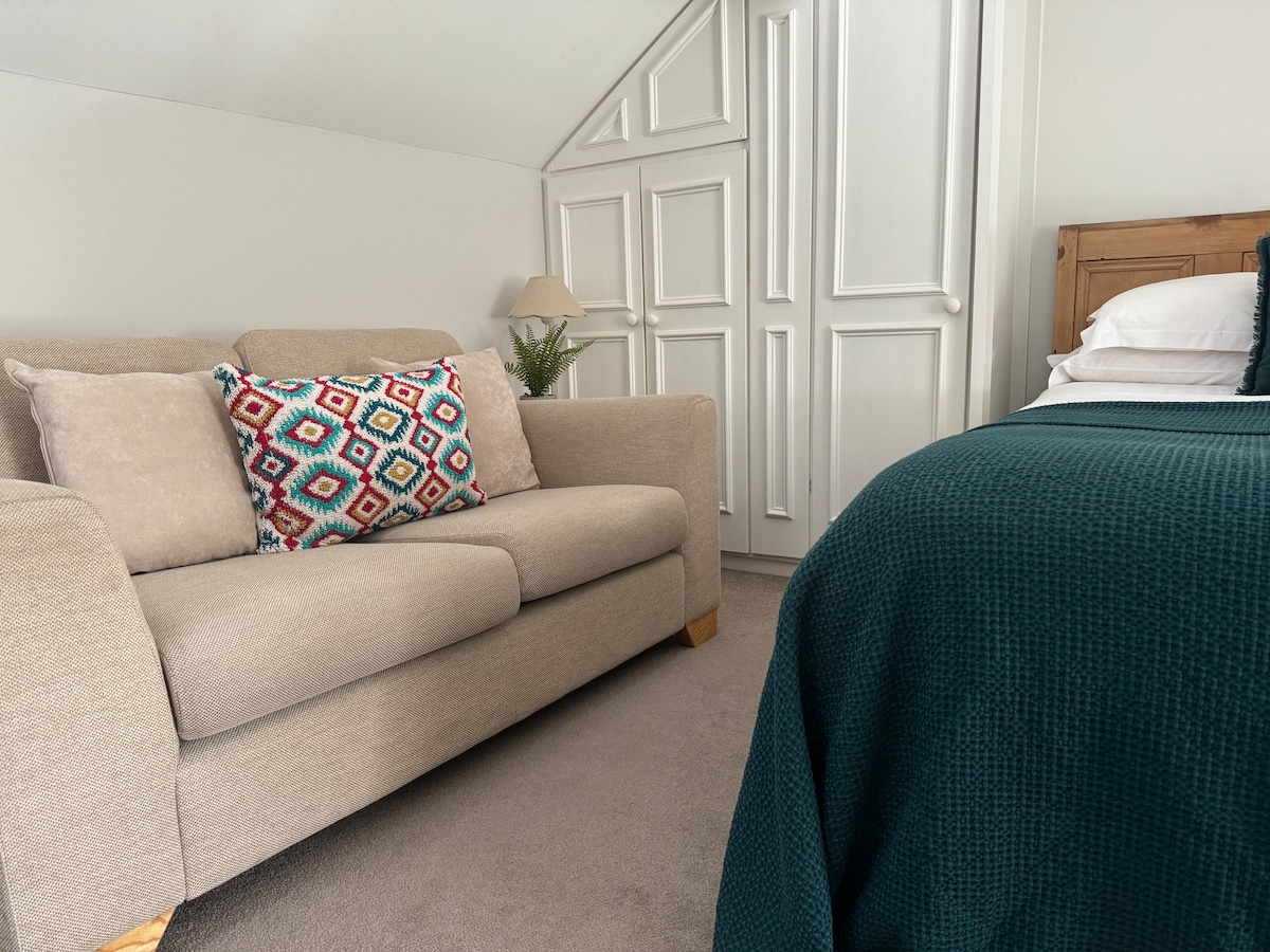 Smeštaj Glavna spavaća soba, privatna tuš kabina, 1 x bračni krevet, Freeview TV Dvokrevetna soba - dva kreveta, TV Dostupan je putni krevetac i stolica za hranjenje Posteljina i peškiri Kupatilo - kada, tuš, umivaonik, WC šolja Kuhinjska zalogajnica - mašina za sudove, Ninja friteza, mašina za pranje veša,električna rerna i ploča za kuvanje, frižider, mikrotalasna pećnica, pribor za kuvanje i pegla Udoban salon 2 kožna naslonjača, Smart TV, električni gorionik za drva Centralno grijanje na gas Besplatan Wi-Fi 1 javni punjač za parking u blizini 1 x mali pas koji podliježe naknadi