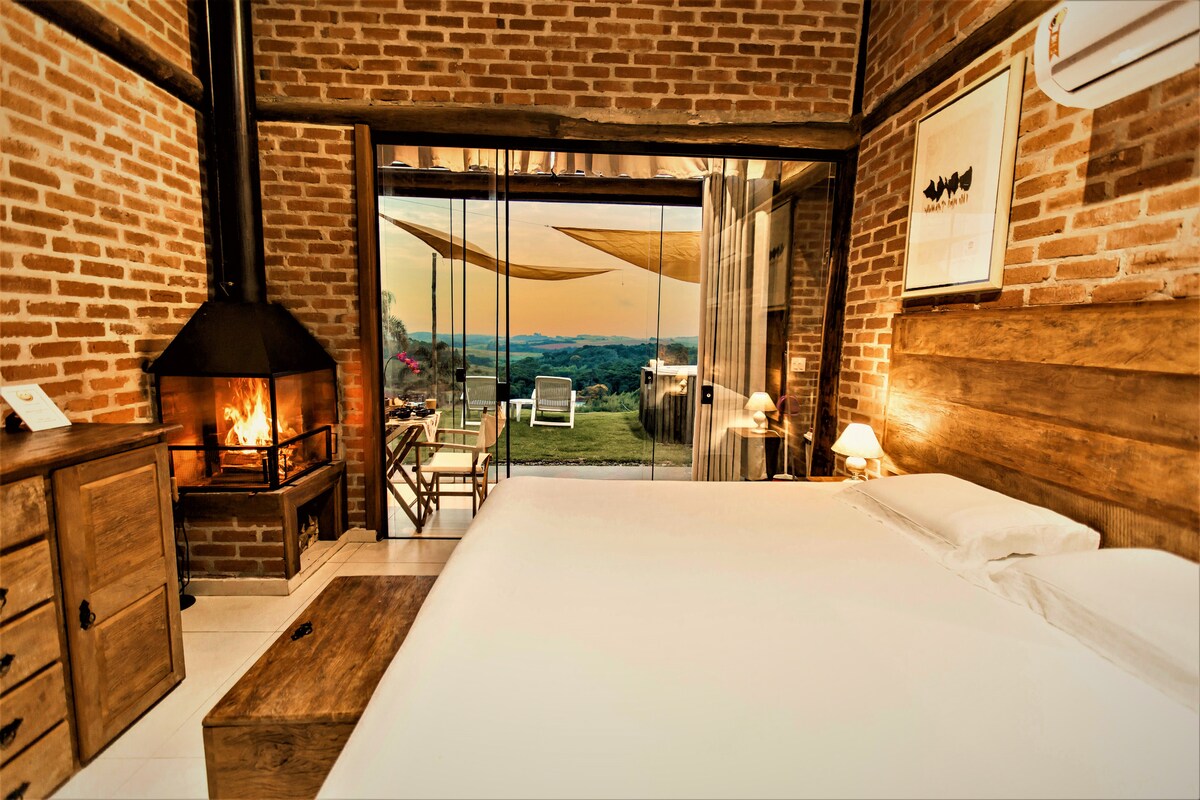 Poziv Chalé Bem-querer je da živi trenutke potpune povezanosti s prirodom. Probudite se uz pjev ptica, osjetite povjetarac na koži, berite voće na nozi, hodajte bosi kroz travu, uživajte u logorskoj vatri pod zvjezdanim nebom. • Aktivnosti na otvorenom | slackline, frescoball, šumska staza, logorska vatra, vrtovi, sjenica, viseća ležaljka, igra starog diva • Širok balkon integrisan sa pogledom na prirodu i šumu • Kancelarija na farmi | Ekskluzivni Wi-Fi i odgovarajući prostor • Echo roštilj i kamin.