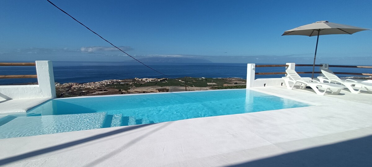 @sleephousetenerife Prekrasna kuća u kanarskom stilu sa dvije sobe, nedavno renovirana, sa velikom terasom i bazenom sa solarijumom i prostorom za opuštanje. Kuća se nalazi u mirnom području sa seoskom atmosferom, ali uz prednost što je udaljena samo 15 minuta od plaže. Kuća je na vrhu brda i ima divan i čist panoramski pogled prema moru. Zalazak sunca je veličanstven sa ostrvom La Gomera u pozadini.