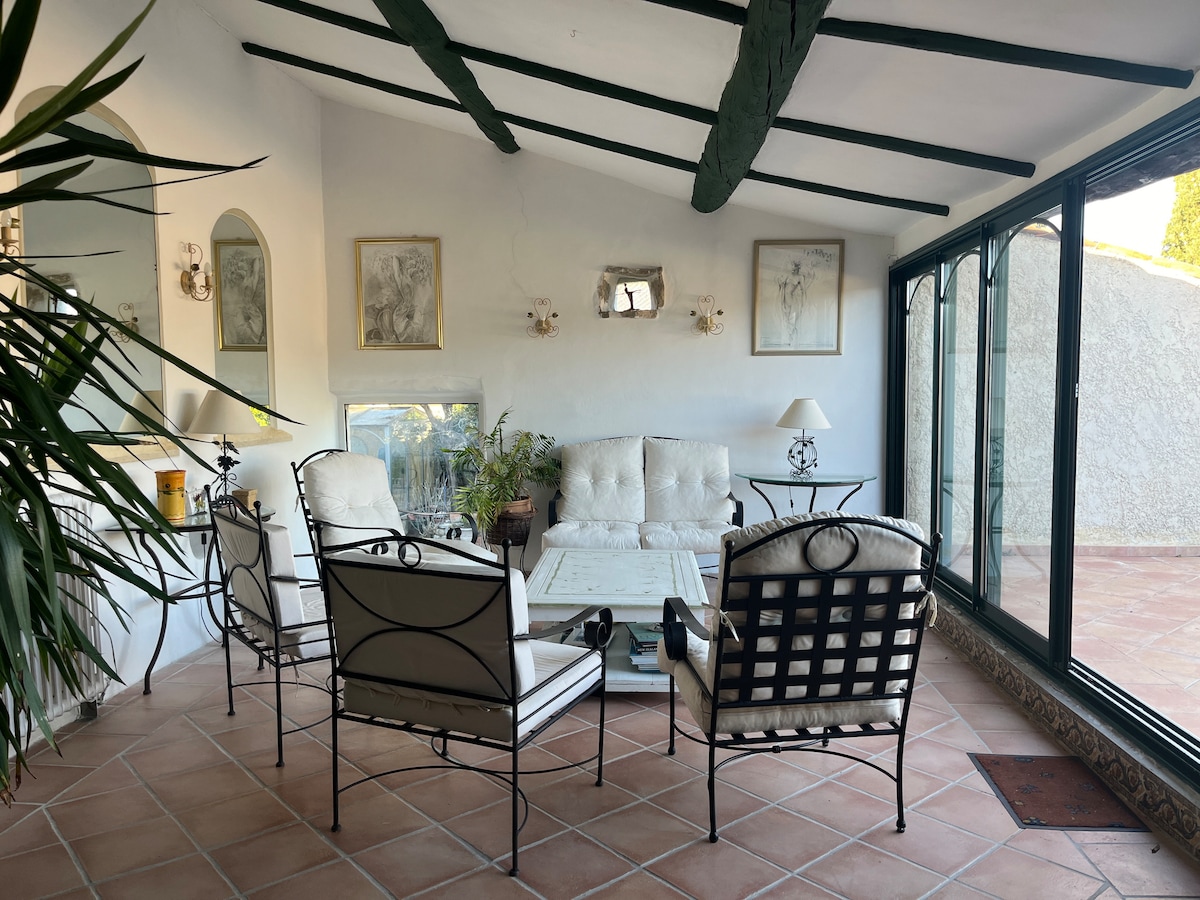 Dođite da se opustite u našoj kući koju je projektovao arhitekta, sa veličanstvenim pogledom, smještenoj na brdu, okruženoj hrastovima i maslinama. Naš porodični dom, veoma svijetao, dizajniran je da uživa u hladnoći ljeti i suncu zimi, potpuno renoviran i izolovan (iznutra i spolja) U parovima, porodici s djecom ili grupama možete planinariti ili pješačiti ili voziti bicikl direktno od kuće.