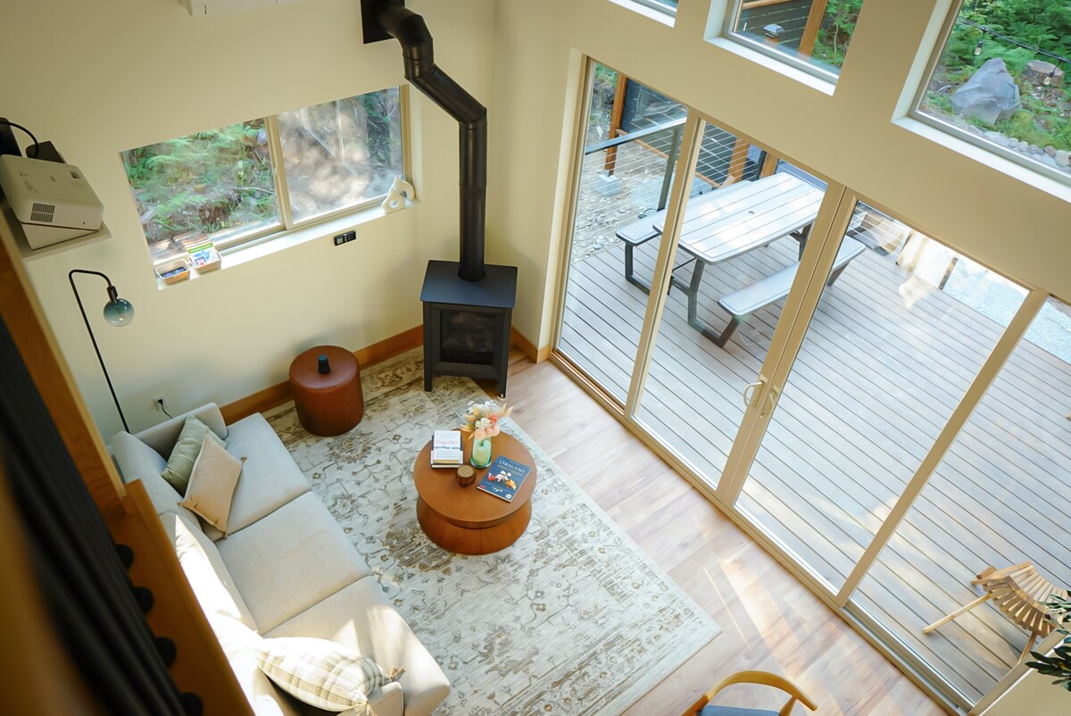 Samo 5 milja od kapije nacionalnog parka Maunt Rainier i 2 minuta od centra Ašforda, bijeg u El Osito BNB: Naša novoizgrađena, moderna minijaturna brvnara opremljena kompletnom kuhinjom, hidromasažnom kadom + grijačem peškira, punjačem za električna vozila, mašinom za pranje/sušenje veša, luksuznim bračnim krevetom, namjenskim radnim prostorom, Starlink Wi-Fi, dvostrukim tušem sa Bose Bluetooth ogledalom, potpuno popločanim kupatilom, spoljnim ognjištem, roštiljem i prostranom terasom. Tu je i Marfi krevet u punoj veličini u privatnoj sobi. El Osito je savršeno planinsko utočište!