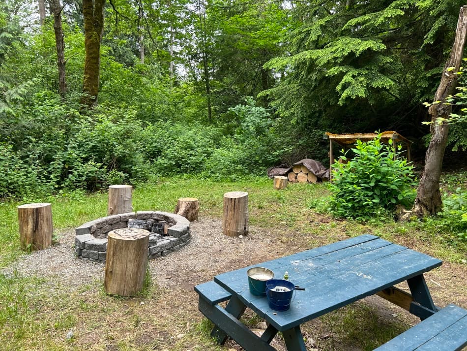 Ovo jedinstveno bajkovito prebivalište je šator/brvnara veličine 10x20 koja se nalazi na drveću. Samo 37 milja do nacionalnog parka Mt Rainier. Blago grijano mjesto za spavanje s bračnim krevetom (s grijačem za prohladne noći). Pokrivena kuhinja na otvorenom sa šporetom, roštiljem, posuđem i posuđem. Privatni toalet sa toaletom za kompostiranje. Uživajte u zajedničkoj prostoriji za tuširanje na otvorenom (tuš u glavnoj kući tokom hladnog vremena) i zajedničkom ognjištu. Ili se njišite u visećoj ležaljci u našem čarobnom WoodHengeu. Dostupan je punjač za električna vozila