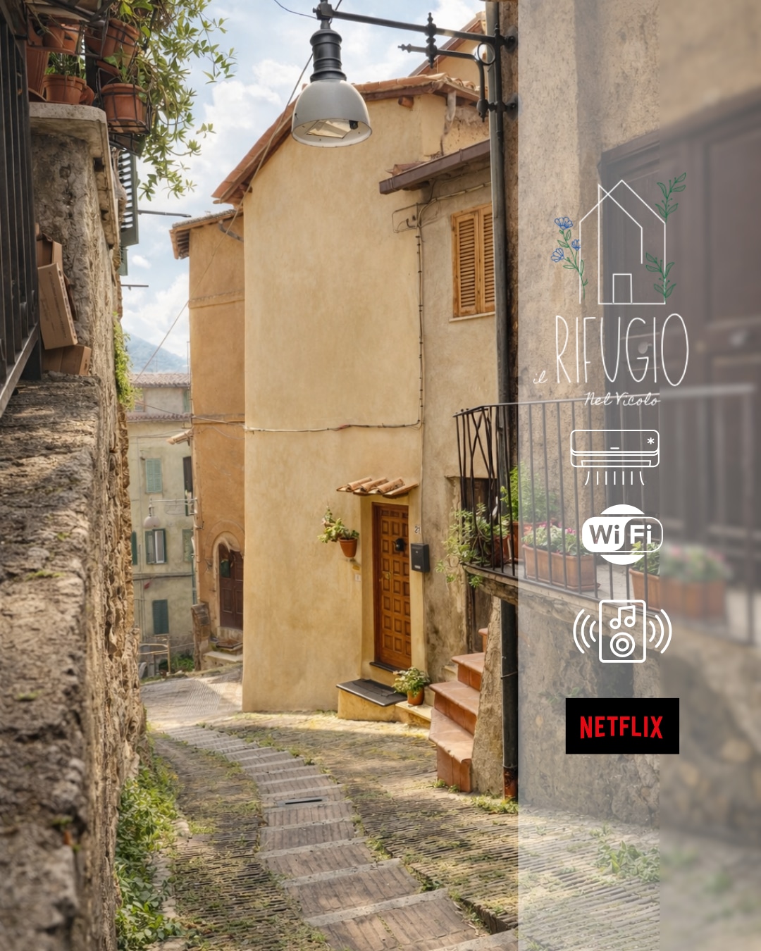 Istorijska srednjovekovna kuća,koja se nalazi u srcu Sermonete,u jednoj od najpoznatijih ulica u blizini zamka Kaetani. Potkrovlje se nalazi na poslednjem spratu. Opremljeno je čajnom kuhinjom, bračnim krevetom (širine 150-179 cm) i dobro opremljenim kupatilom sa tušem. Na raspolaganju našem gostu terasa sa prelepim pogledom. Vermoneta je veoma blizu Ninfine bašte, plaže Sabaudia,Sperlonge i Terakine. Ako želite da svakodnevno putujete u Rim,Napulj,Firencu, železnička stanica je udaljena samo 10 minuta vožnje od kuće.