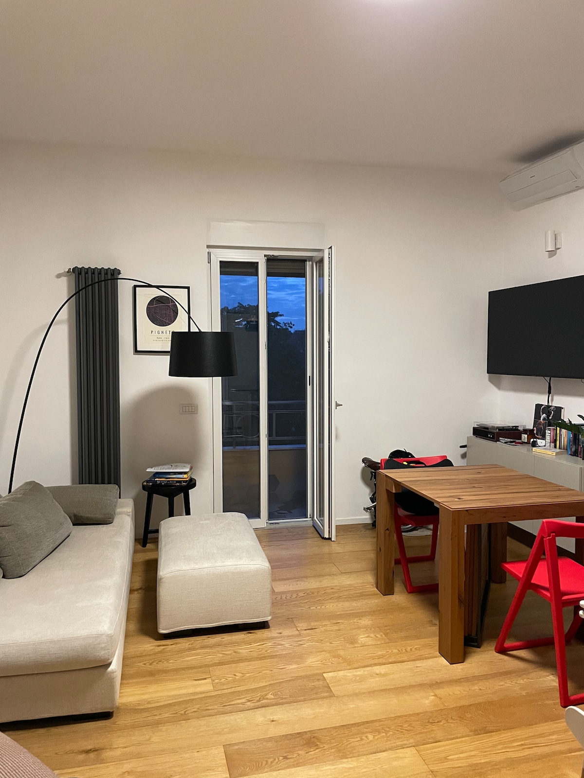 U karakterističnoj ulici u pješačkoj zoni, srcu Pinjeta, četvrti koja spaja rimski duh i modernost. Njujork tajms ga je nazvao „Rimskim Bruklinom”, sa barovima na otvorenom, restoranima i tipičnom pijacom. Stan, nekadašnji arhitektonski studio, nalazi se na 2. spratu istorijske zgrade. Idealno za: parove, pametne radnike zahvaljujući prirodnom svjetlu, praktičnosti radnog/trpezarijskog stola i dobro povezanom prostoru.