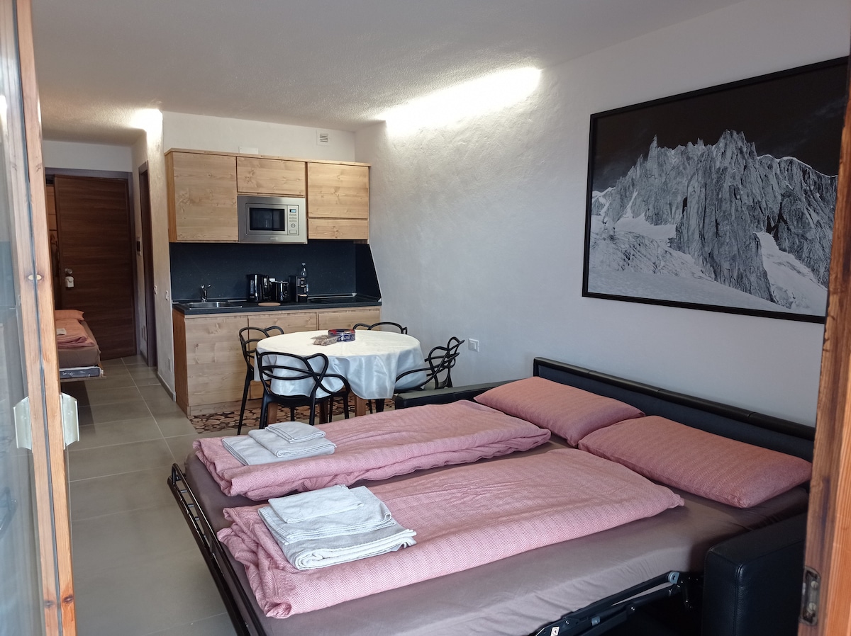 Studio namješten kao prelijepa hotelska soba! Sve vam je nadohvat ruke u malom, ali vrlo dobro održavanom prostoru. Udaljen je 50 metara od skijališta i dva minuta od staza za spust i planinarskih staza. Grad Aosta je udaljen 30 minuta vožnje. Pila se ljeti i zimi može doći iz Aoste i gondolom koja će vas odvesti 200 metara od kuće za 20 minuta.