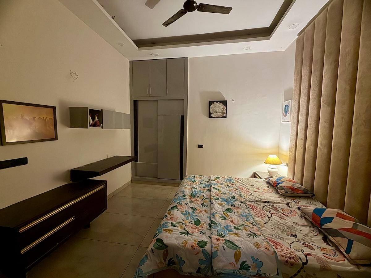 Dobro došli u apartmane Trovero! Nalazi se u srcu šireg područja Noide, u blizini izložbenog centra Expo Mart (8 km) Šta će vam se svidjeti: ✔ Privatni balkon – uživajte u očaravajućem pogledu na kuću u nizu ✔ Odlična lokacija – blizu vrhunskih atrakcija, restorana ✔ Moderna udobnost – Prelijepo uređen prostor s udobnim krevetom, udobnim prostorom za sjedenje i elegantnim dekorom ✔ Potpuno opremljena kuhinja – pripremite omiljena jela s lakoćom ✔ Brzi Wi-Fi i Smart TV – ostanite povezani i zabavite se. ✔ Spokojan ambijent – mirno luksuzno i privatno utočište