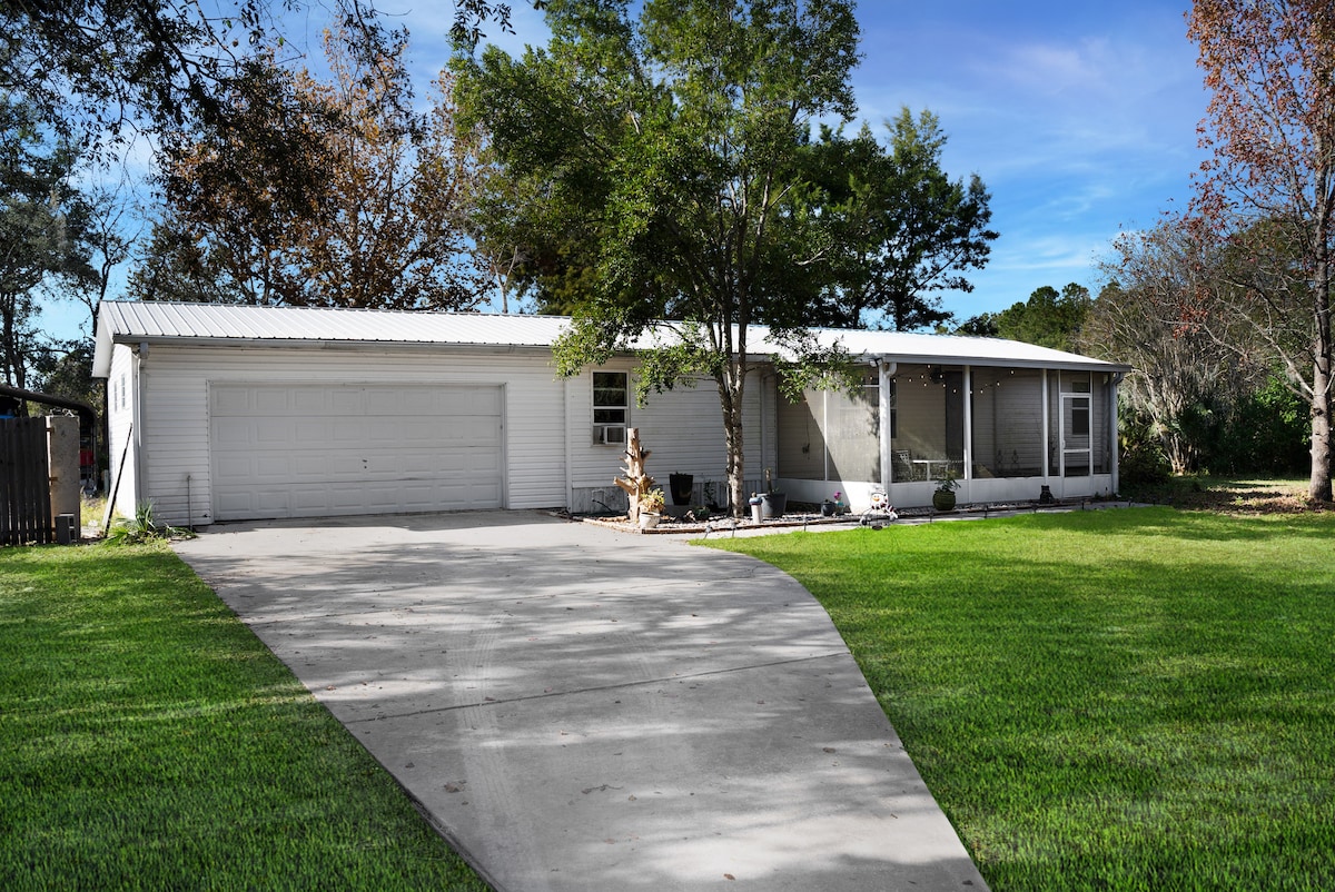 Come and create magical memories at this cozy countryside stay. Enjoy the spacious and fenced in yard for the little ones and also pet friendly. Take advantage of the awesome outdoor areas like the screened in porch or have a nice picnic in the outdoor dinning area, and Have a fun night with a bonfire. Only ten minutes from St. John river for any boating days and only fifteen minutes from Hontoon island. Great yard for small gatherings. House comes with all amenities to make you feel at home.