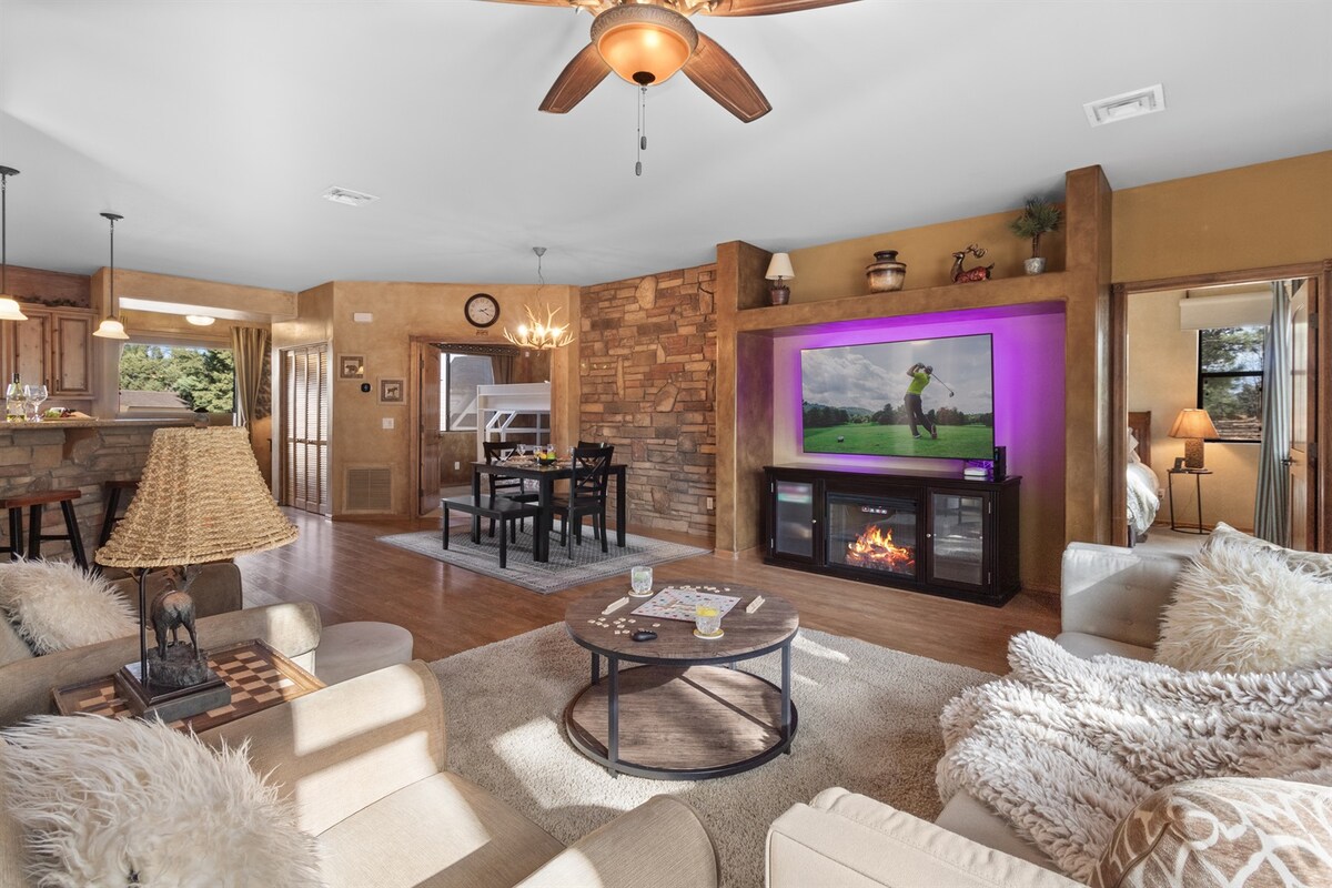 Bez obzira na to da li tražite neverovatan pogled na spoljašnjost ili eleganciju unutrašnjosti, ovo mesto ima sve. Smještena u jednoj od najljepših zajednica Show Low-a, ova seoska kuća udaljena je nekoliko minuta od jezera Fool Hollow. Uživajte u neverovatnom pogledu na zelenilo leti, a sneg zimi sa balkona! Štaviše, ovaj stan je udobno opremljen vrhunskim nameštajem i prelepo je uređen kako biste se osećali kao kod kuće. Zaljubićete se u ovo mesto i njegove brojne sadržaje!