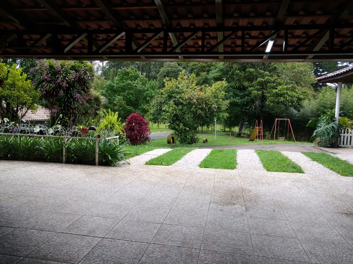 Teacara za događaje i ugošćavanje. Smješten u metropolitanskom regionu Kuritiba, prijatno mjesto u skladu sa prirodom, bujna vegetacija, staze, mini vodopad, fudbalski teren, odbojka, roštilj, kamin, internet, Wi-Fi, opremljena kuhinja, šporet 6 usta, mikrotalasna pećnica, aparat za kafu, mikser, aparat za sendviče, električno kuvalo za vodu, blender, 5 kupatila, smještaj za 16 osoba, događaj kapaciteta 80 osoba. 15 minuta od aerodroma Afonso Pena.