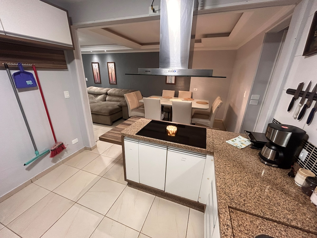 Puna kuća, za cijelu porodicu, pružajući prijatne trenutke, sa spoljnim prostorom za uživanje sa visećom ležaljkom i dvorištem sa igralištem, prostranom kuhinjom sa integrisanim trpezarijskim stolom, dvokrevetnom sobom sa jacuzzijem. ( Wi-Fi) Lokacija je lako dostupna, 5 minuta od centra Piraquara, 19 minuta od međunarodnog aerodroma Kuritiba (Afonso Pena) . I 22 minute od centra Kuritibe , znamenitosti kao što su Jd. Botanical, and 19 mins São José mall.