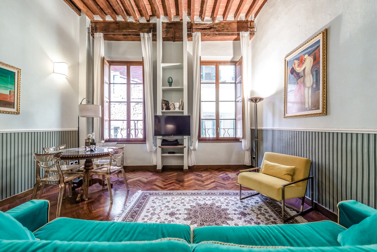 Cijeli stan - U istorijskoj zgradi srednjovjekovnog porijekla, na arkadama Borgo Streta, najatraktivnijoj ulici u Pizi, punoj prodavnica, klubova i turističkih atrakcija. Sve ljepote grada su odmah dostupne peške. Pažljivo renoviran i namješten, udobno prima dvije odrasle osobe. U stanu se nalaze ostaci drevnih gradskih zidina i niša sa svodnim krovom kočije koja se nalazi na stubovima jonskog stila.