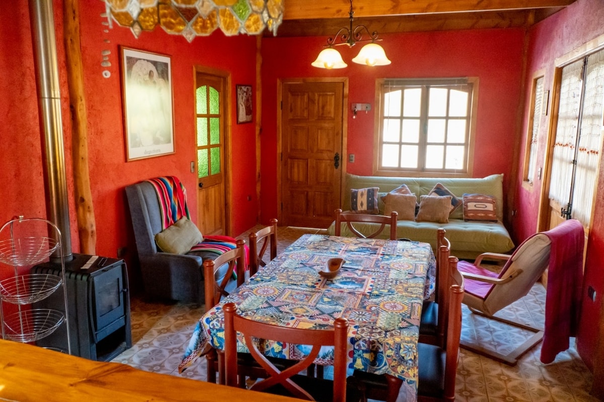 Uživajte u odmoru u našoj udobnoj kući Casa de Barro. Pored prelepe terase sa najboljim pogledom na pejzaže elki i zvezda, ima i udobnu dnevnu sobu, opremljenu kuhinju, trpezariju i spavaću sobu sa kupatilom. Brvnara se nalazi u Pisko Elkiju, samo dva bloka (600 metara) od seoskog trga. Predivna bašta sa rolnom, tipična, viseća ležaljka i terasa pozivaju vas da se odmorite i uživate u šarmu doline elki.