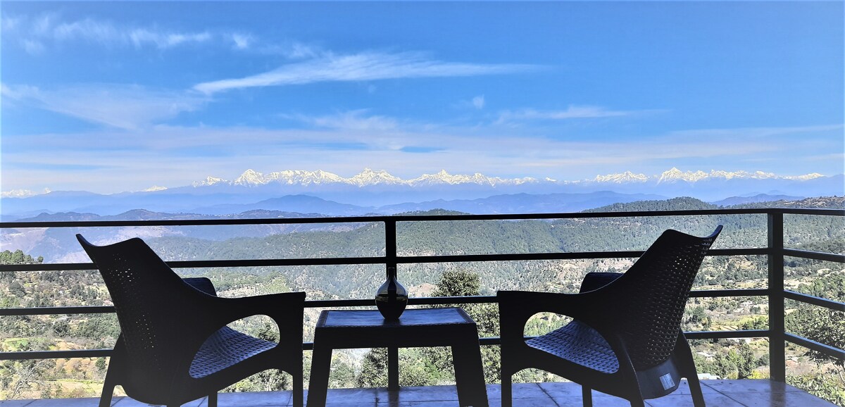 Smešteni smo u rustikalnom seoskom okruženju sa pogledom na dolinu. Ceo asortiman Nanda devi, Panchachuli, Trishul, Mount Kamet ++ se može vidjeti iz svake sobe. Sobe su prostrane s dovoljno prostora za sjedenje i pripadajućom privatnom terasom. Neke sobe imaju malu čajnu kuhinju i trpezariju. Dnevni prostor ima dva kauča 2x2 odakle dobijate jasan pogled na Himalaje