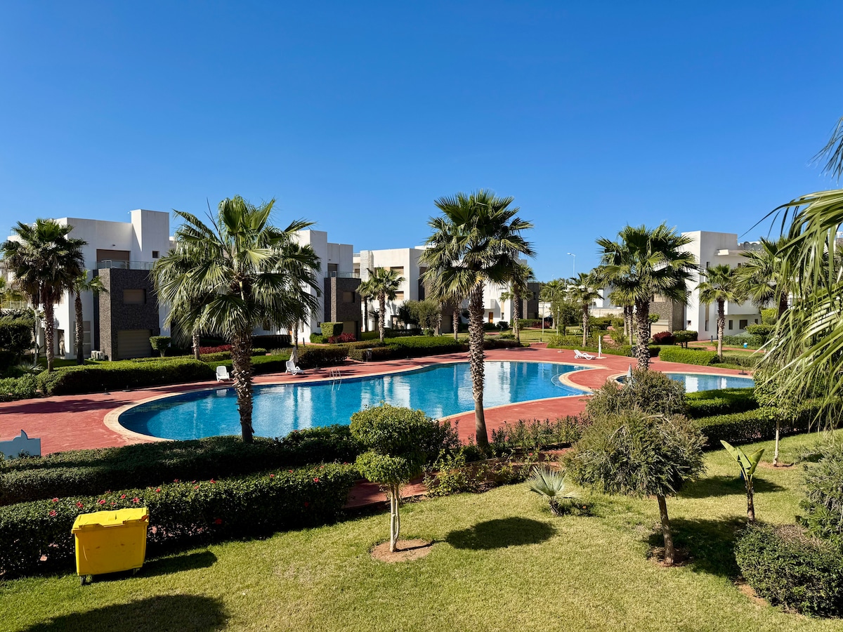 Savršeno za porodični odmor u Saidiji! Prekrasan prostrani stan u prizemlju, u ograđenoj i sigurnoj rezidenciji sa bazenom. Terasa s pogledom na veliku mirnu baštu, savršena za igru djece u miru. Potpuno opremljena kuhinja sa filterom za vodu za piće (7 nivoa), svijetla dnevna soba, dva velika ormarića za odlaganje. Pet minuta od plaže, marine i velikog područja Marjane automobilom. Udobnost, opuštanje i uspomene su zagarantovani!