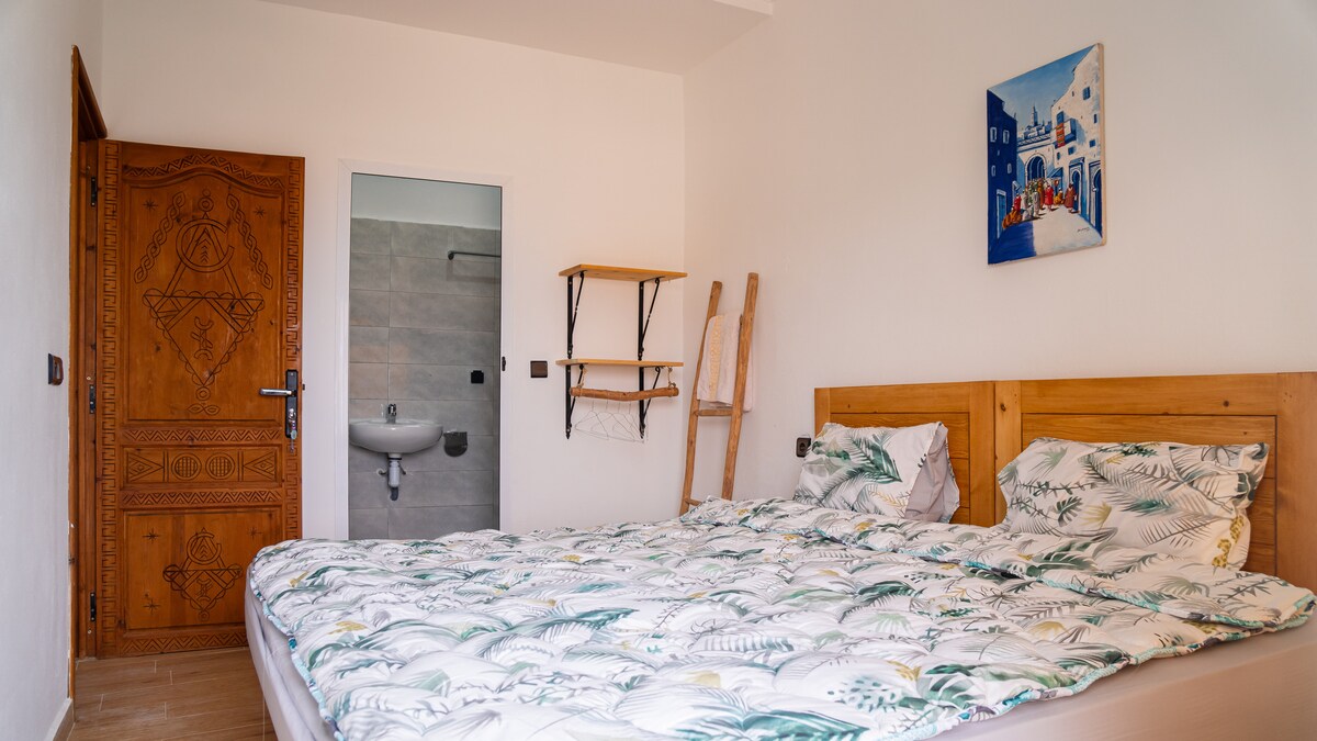 Zakoračite u luksuz i spokoj u našem apartmanu, gdje se moderna udobnost susreće s pogledom koji oduzima dah. Ovo intimno utočište ima privatno kupatilo za opuštanje i balkon koji nudi zadivljujuću panoramu okeana i planina. Uz direktan pristup živopisnoj surferskoj sceni Tamraghta, ovo prijatno utočište nudi ne samo sobu, već i doživljaj. Iskusite toplinu našeg gostoprimstva.