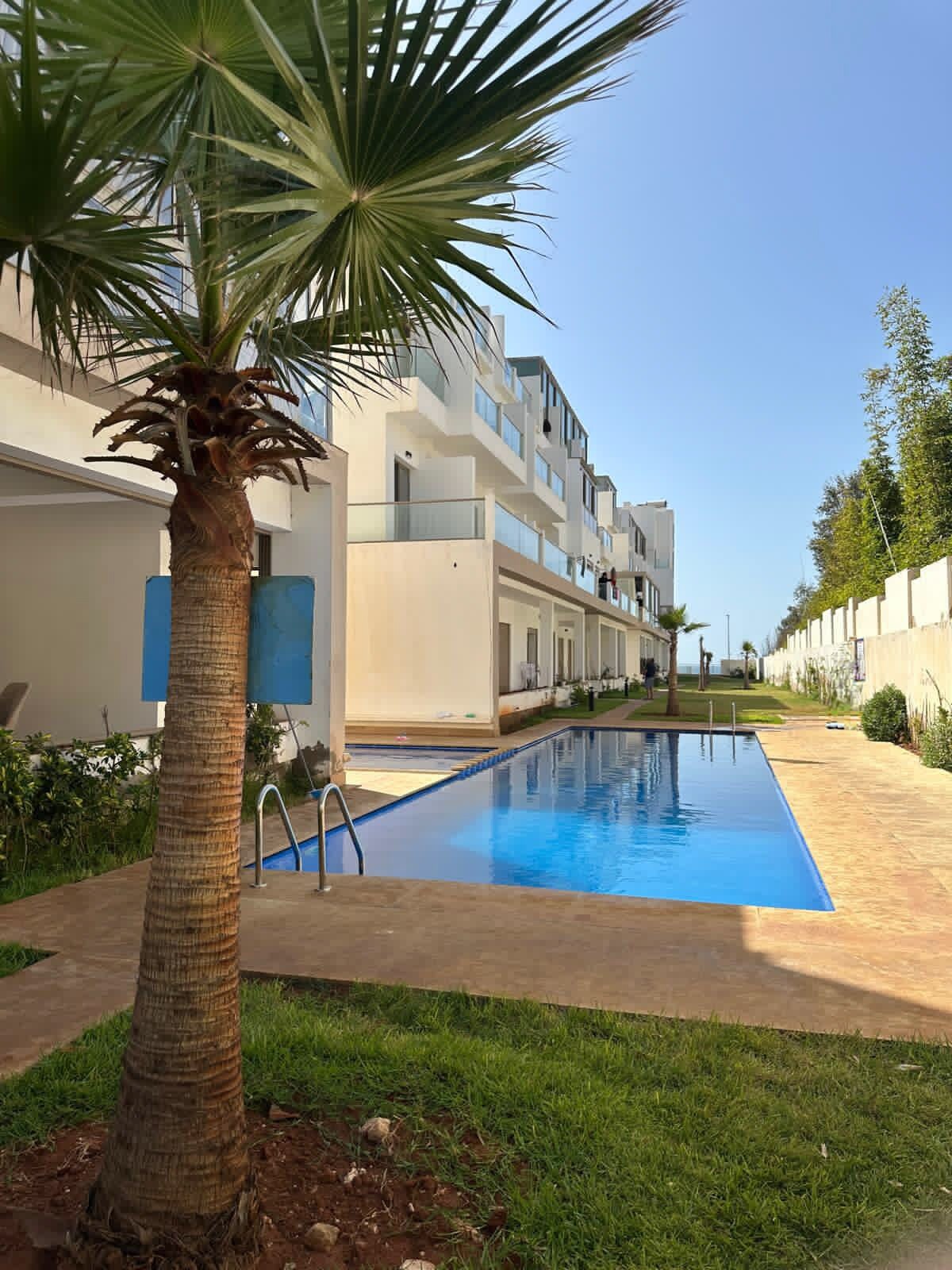 Veoma lep, šik i potpuno opremljen apartman, smešten u tihom stambenom kompleksu, obezbeđen 24 sata dnevno i idealno smešten na samo 2 minuta hoda od plaže Sablette. Savršen za putnike, ovaj studio nudi udobnost, mir i direktan pristup aktivnostima na obali. Stanari uživaju u prelijepim, dobro održavanim vrtovima i 3 velika bazena za opuštanje u bilo koje doba dana. Besplatan parking je dostupan u sklopu objekta. Brzi pristup autoputu za Kazablanku i Rabat