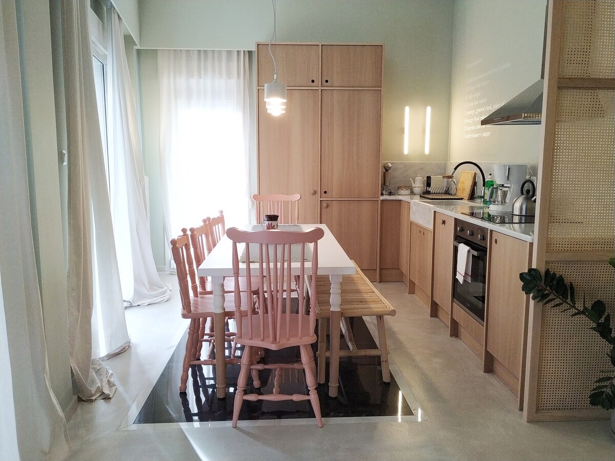 Dragi budući gosti, domaćin sam od 2013. godine i sa sigurnošću vam mogu reći da je ova neoklasična kuća jedna od rijetkih koja je prava neoklasična visoka plafonska kuća, što za vas znači rijetko iskustvo. Dvospratna vila od 250 m² sa kolekcionarskim namještajem iz prošlog vijeka koji se uklapa sa modernim namještajem, originalnim pravim slikama, ličnom estetikom mene, Grkinje kojoj se posrećilo da se rodi u ovoj neoklasicističkoj vili samo nekoliko metara od Akropolja