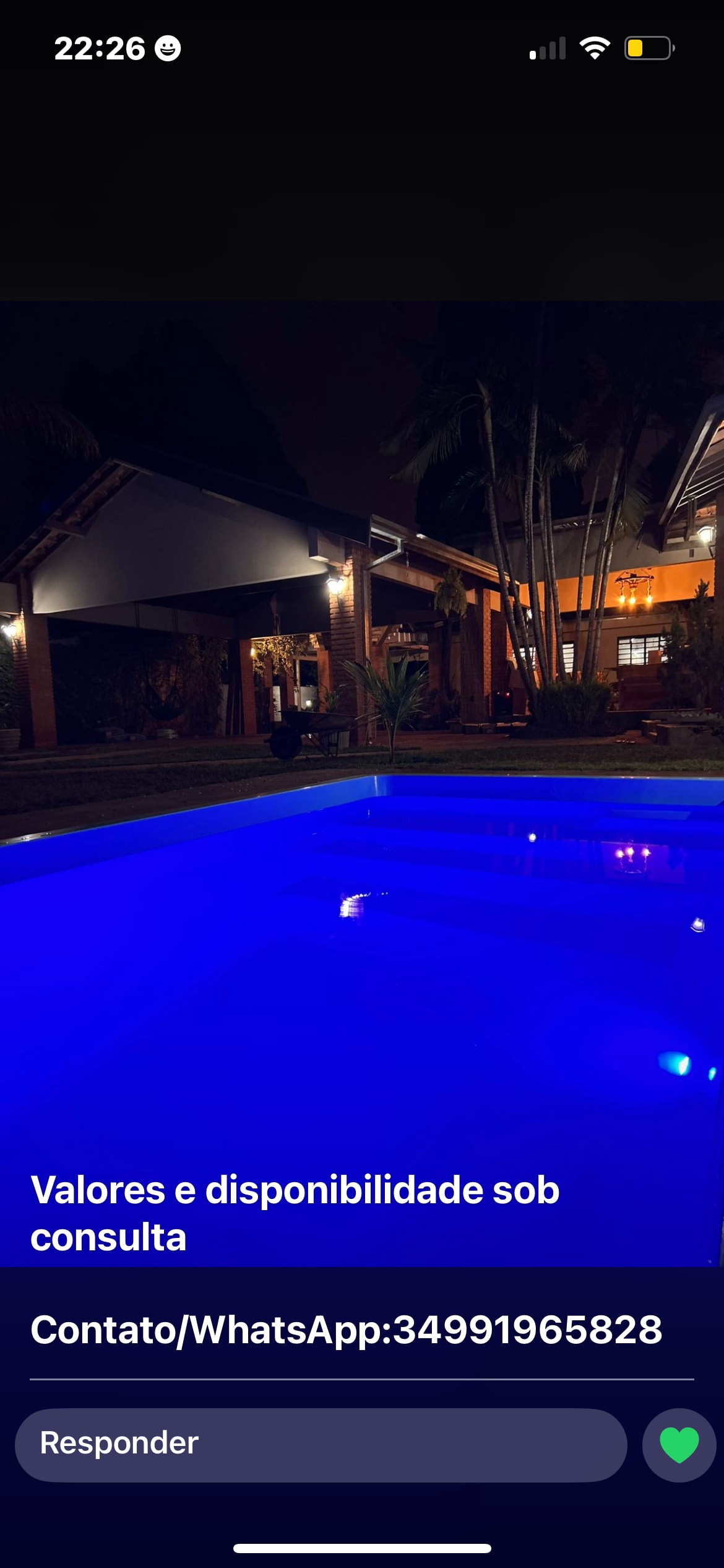 Rancho LR — conforto e lazer em um só lugar Ótimo espaço de lazer , ideal para quem busca um ambiente acolhedor para receber família e amigos. O Rancho LR você encontra: Churrasqueira Fogão Geladeira Piscina Utensílios cozinha e churrasco Quartos com beliche e cama Perfeito quem quer relaxar, confraternizar ou celebrar momentos especiais. Venha conhecer o Rancho LR e aproveite uma experiência inesquecível! NÃO TEM ROUPA DE CAMA E BANHO.