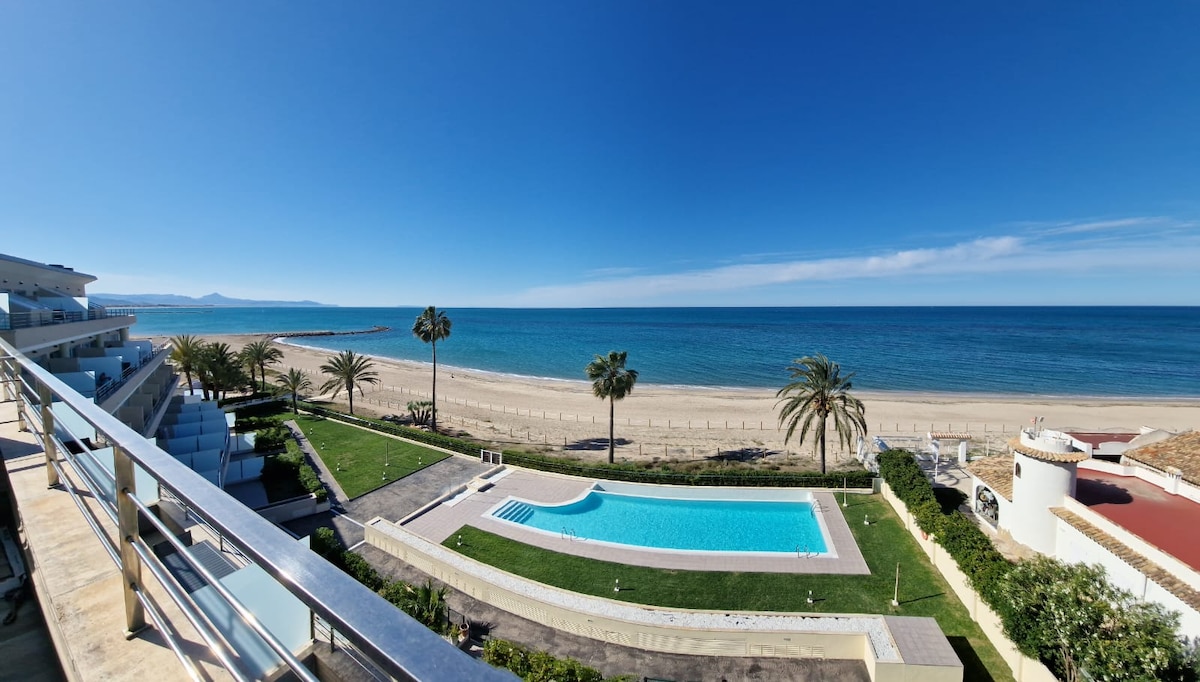 Probudite se s morem pod nogama! Luksuzni dupleks u prvom redu, bukvalno na pijesku, sa pogledom na more sprijeda iz svake sobe i prostranom terasom. Idealna je za 4 gosta, ima 2 spavaće sobe sa bračnim krevetom, 2 kupatila, potpuno opremljenu kuhinju, vešernicu sa mašinom za pranje veša i klima-uređaj u celom smeštaju. Nalazi se u nedavno izgrađenom kompleksu s direktnim pristupom plaži, velikim bazenom i terenom za padl-tenis. ✔ Prvi red ✔ Pogled na more ✔ Bazen ✔ Direktan pristup plaži
