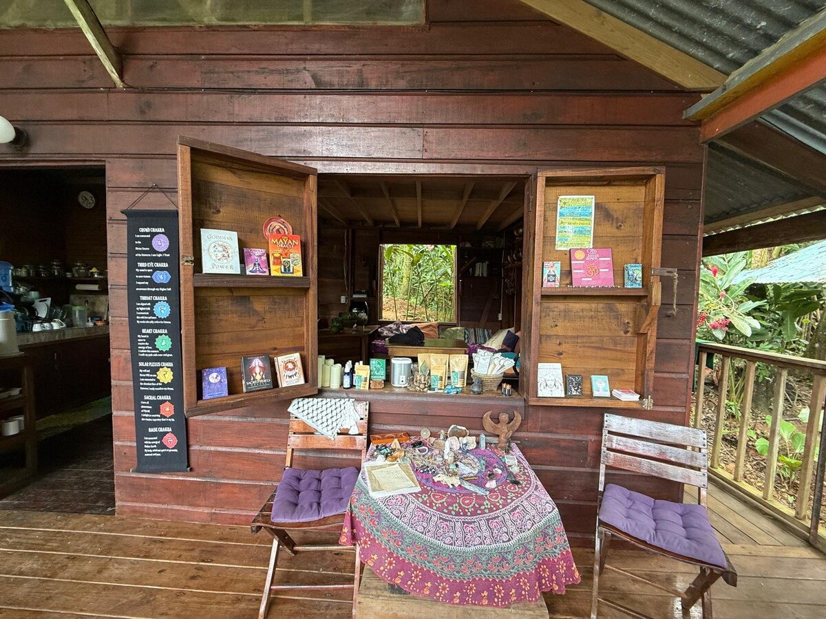 Pobjegnite u našu udobnu Jungle Casita, butik skrovište osmišljeno za udobnost i spokoj. Savršena za najviše tri gosta, ova kućica se može pohvaliti potpuno zaštićenim trijemom, privatnim kupatilom i kutkom za kafu kako bi vam boravak bio što praktičniji. Okružena bujnim palmama i živopisnom džunglom, ova kućica nudi spokojan i impresivan doživljaj u prirodi. Uživajte u času joge, pješačite džunglom ili se opustite na trijemu. Doručak je UKLJUČEN, vegetarijanski, organski i poslužuje se u našem restoranu.