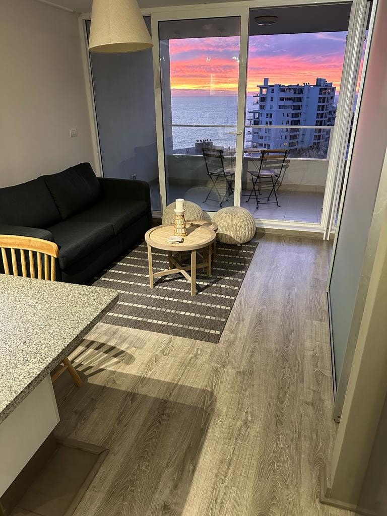 Departamento nuevo ubicado en barrio exclusivo de Con con, Costa de Montemar. El departamento está amoblado y full equipado con acceso a internet, piscina, gimnasio, arriendo de sauna, estacionamiento privado y cuenta con una vista panorámica espectacular. Existen supermercado y locales comerciales a menos de cinco minutos y se encuentra a 100 m de las dunas de con con, ideal para dos a tres personas, lo cual es perfecto para entretenerse y descansar.