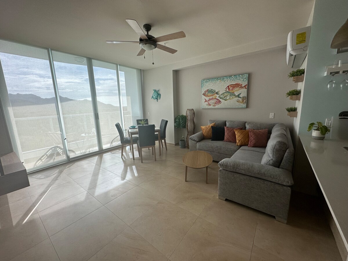 Stan uz okean sa izuzetnim pogledom. Ima dvije spavaće sobe s pogledom na okean, bračni krevet i dva odvojena kreveta, TV od 55 inča, centar za pranje veša, mikrotalasnu pećnicu, kuhinju, rernu, terasu s pogledom na okean, parking (E3 84). Zgrada ima više sadržaja: bazene, privatni restoran, saunu, teretanu, prostor za roštilj (ima administrativne troškove), prostor za igru za djecu, prostor za kućne ljubimce, sve je rezervisano putem aplikacije.