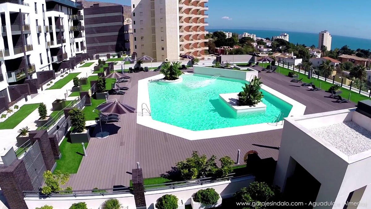 Stan kapaciteta za 4 osobe, nalazi se u centru Aguadulcea, samo 450 m od plaže. Klima uređaj sa klima-uređajem/grijanjem, potpuno opremljena kuhinja, TV, privatno kupatilo sa tušem, sredstva za higijenu, fen za kosu, mašina za pranje i sušenje veša, pegla za odjeću, aparat za kafu, kauč na razvlačenje i bračni krevet. Nalazi se na nižim spratovima zgrade i ima terasu. Uključuje besplatan Wi-Fi i nudi privatni parking za 9,95 € po noćenju, u zavisnosti od rezervacije i u zavisnosti od dostupnosti.