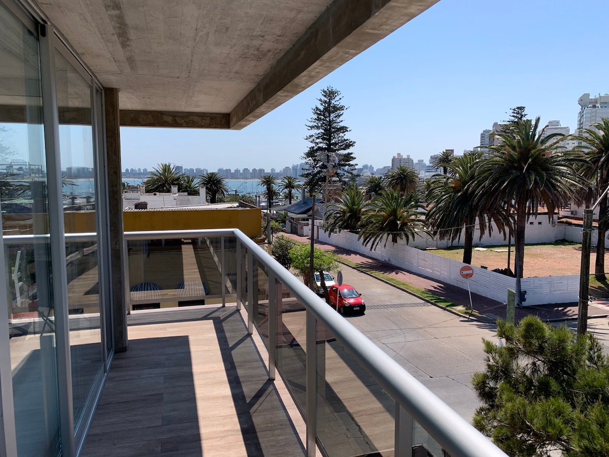 Elegantan i prostran trosoban stan na poluostrvu sa 3 kupatila (jedan sa zasebnom kupaonicom) za 6 osoba sa sadržajima u jednom od najboljih područja u Punta del Esteu. Ističe se prostrani prednji balkon s pogledom na okean i bulevar sa stolicama i stolom. Ima izlaz na ramblu za šetnju duž obale i dolazak do prstiju. Nalazi se u centru grada, 200 m od ulice Gorlero, 300 m od luksuzne 20. ulice, u blizini luke za jedrenje i restorana , kafića i prodavnica