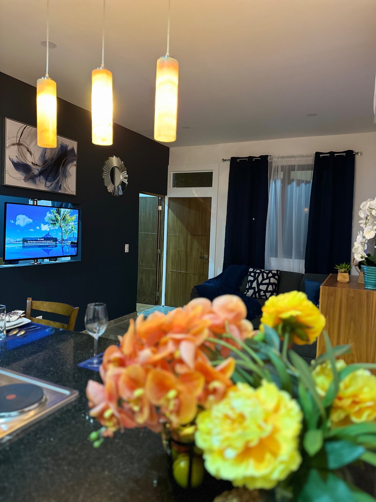 Pobjegnite u naš luksuzni dvosobni apartman u srcu Kozumela! Sa zapanjujućim terasama, modernim dnevnim boravkom i visokokvalitetnim sadržajima, ovaj stan je savršeno mesto za opuštanje i uživanje u miru ostrva. Opustite se ispred televizora sa ravnim ekranom, večerajte za elegantnim stolom za šest osoba ili pripremite sopstvene obroke u potpuno opremljenoj kuhinji. Naše udobne spavaće sobe imaju bračne krevete, privatne terase i luksuznu posteljinu za miran noćni san.