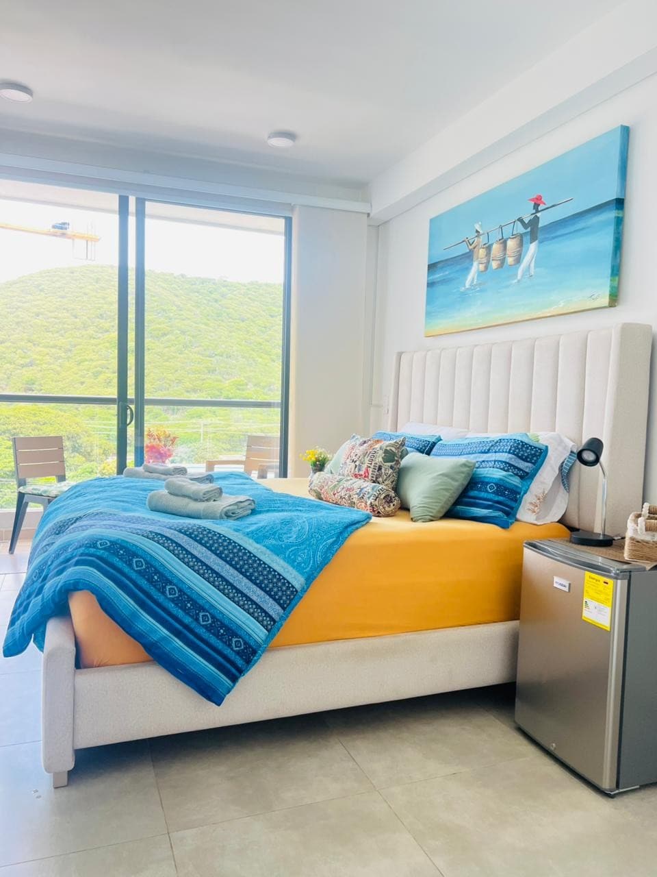 Dobro došli u Santa Martu! Uživajte u boravku u ovom centralno lociranom, potpuno novom, prelepom i mirnom apartmanu. U našem stanu ćete naći bračni krevet i kauč na razvlačenje. Radni sto/radni prostor za rad na daljinu. Potpuno opremljena kuhinja i prostor za pranje veša. Domaći i prelepi ukrasi koji će učiniti vaš boravak nezaboravnim. Divan pogled na okean sa bazena koji se nalazi na 15. spratu. Nalazi se u Rodaderu, samo nekoliko minuta hoda od plaže.