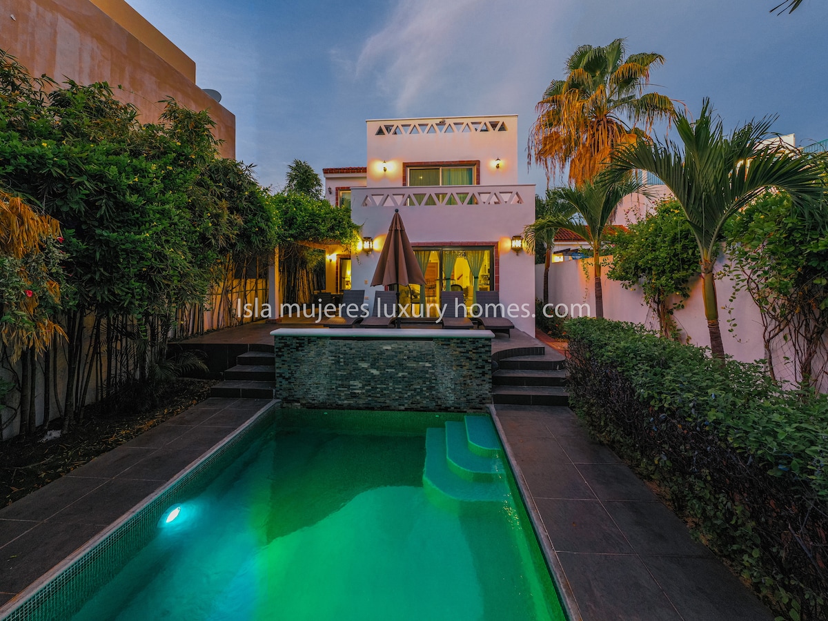 Prekrasan pogled na Karipsko more vas čeka u Casa Camacho u ostrvu Mujeres u Meksiku! Uživajte u odmoru u ovom potpuno opremljenom domu sa 3 spavaće sobe i 3,5 kupatila sa mnogo prirodnog svjetla i neometanim pogledom na more. Uživajte u karipskom povjetarcu iz beskonačnog bazena ili se opustite na krovnoj terasi od 2000 kvadratnih metara sa privatnim grijanim bazenom za kupanje, uživajući u pogledu od 360 stepeni na ostrvo i kontinentalni Kankun.