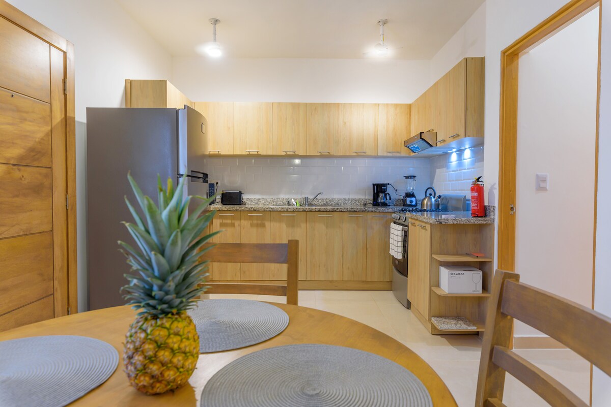 Vaš luksuzni raj u Punta Kani! Pobjegnite u naš ekskluzivni stan u odmaralištu Kana Bej, pored hotela Hard Rok. Uživajte u privatnom grijanom jacuzziju i privilegovanom pristupu klubu Kana Bej Bič (sa popustom za potrošnju!). Savršeno za 4 odrasle osobe i do 2 djece. Ova moderna dvosobna jedinica je potpuno opremljena: kompletna kuhinja, pametni televizori, brzi Wi-Fi i svi sadržaji. Bezbjednost non-stop. Istražite teren za golf Džeka Niklausa, gurmanske restorane i živopisan noćni život. Preporučujemo vam da iznajmite vozilo.
