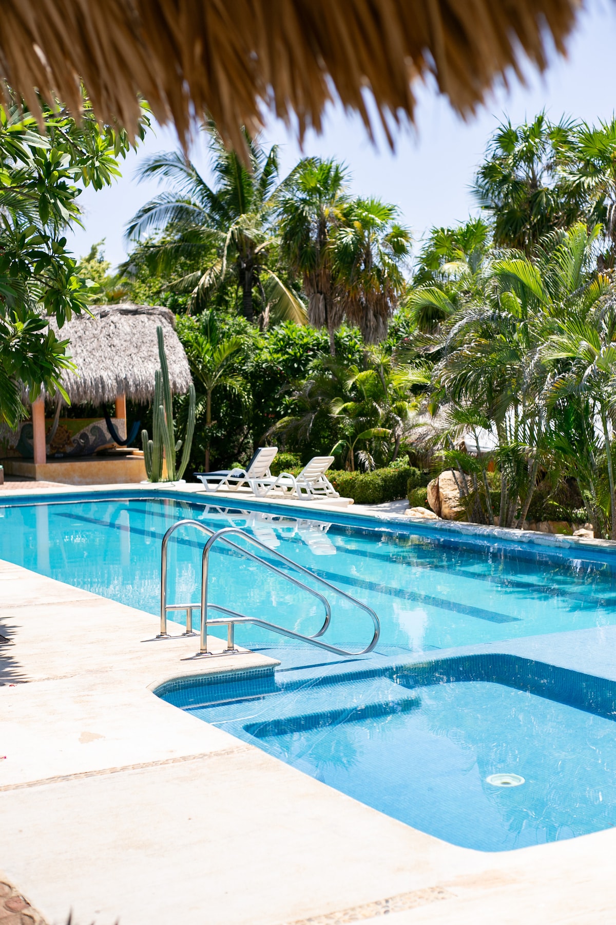 Uživajte u privatnoj sobi s bazenom samo jedan blok dalje od Plaja Zicatele. Savršeno za parove koji traže romantični odmor, surfere koji žele da budu blizu talasa i digitalnih nomada kojima je potreban mir i pouzdan Wi-Fi. Opustite se u bazenu, uživajte na suncu i doživite Puerto Eskondido.