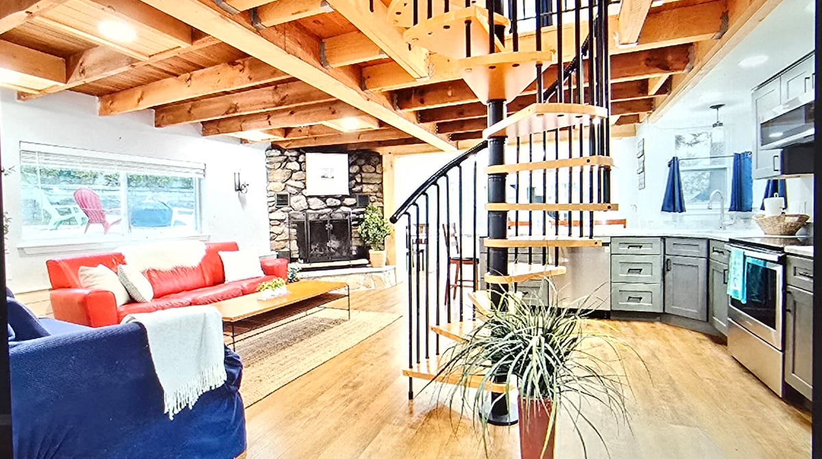 Uronite u spokoj u našem mirnom utočištu u južnom Nju Hempširu. Ovaj istorijski prostor, ukrašen originalnom drvenarijom, rustičnom ciglom i visokim plafonima od 3,35 m, nudi prostrano utočište od 246 kvadratnih metara. Opustite se u kadi ili uživajte u pogledu na vodopad sa terase. Praktično blizu centra grada, ali dovoljno daleko za neometan mir. Dobro došli u svoje utočište za odmor i podmlađivanje. Kancelarija iz snova za rad na daljinu sa brzim povezivanjem i namenskim radnim prostorom na daljinu