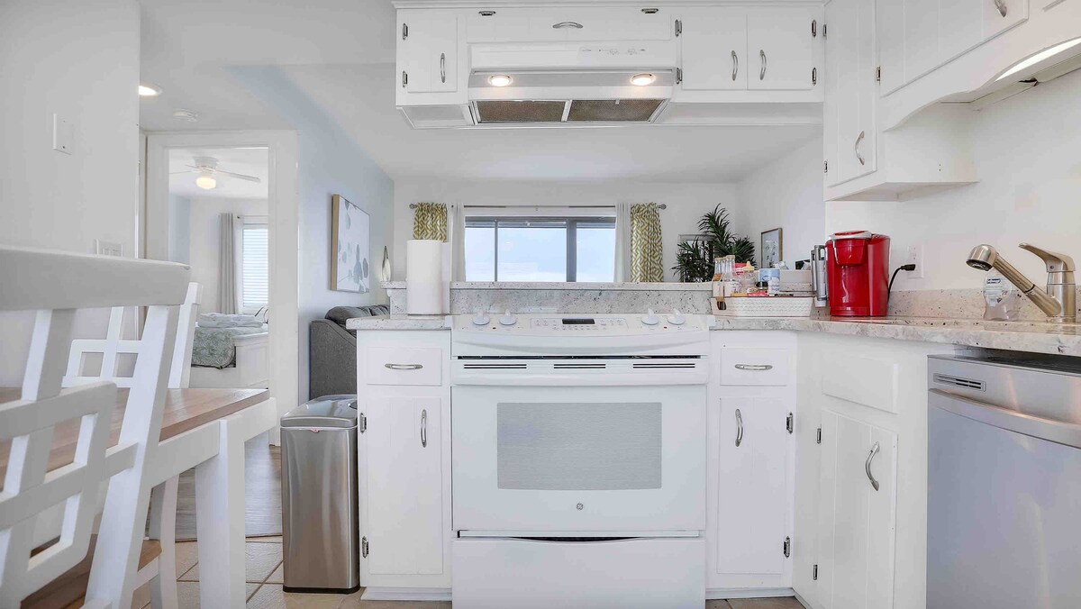 Stan sa pogledom na okean, samo nekoliko minuta hoda od plaže i centra Karolina Biča! Ovaj stan sa 1 spavaćom sobom i 1,5 kupatilom ima privatni balkon sa pogledom na okean i vatromet, kompletnu kuhinju i udoban dnevni boravak. Može da primi 4 osobe uz jedan bračni krevet (širine 150–179 cm) i jednu bračnu sofu na razvlačenje (širine 150–179 cm). Savršeno za parove, male porodice ili odmor za djevojke. Prošetajte do plaže, restorana i prodavnica za jednostavan i opuštajući boravak. Bazen se otvara za vikend povodom Dana sećanja Molimo vas da u sklopu objekta ne koristite vozila za golf, jer će biti odvučena.