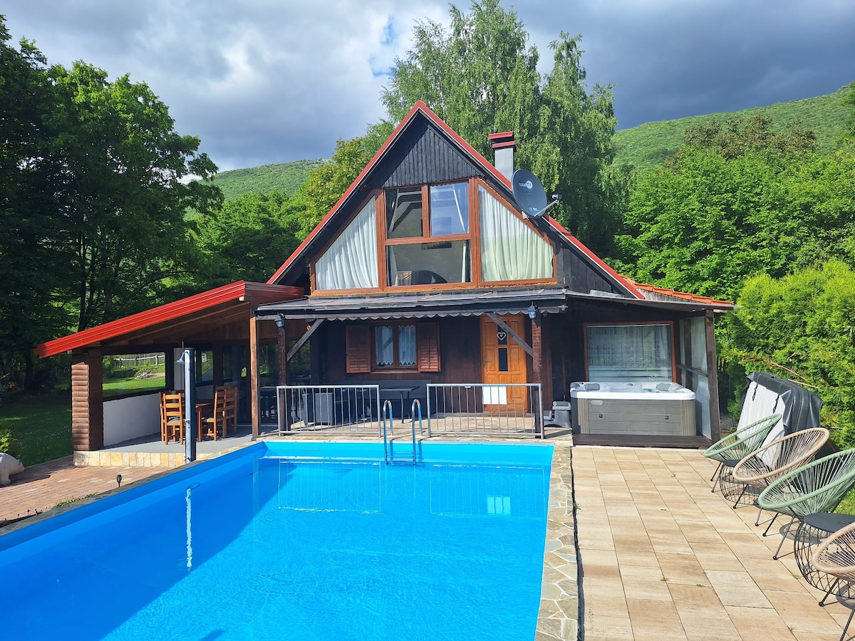 Planinska kuća sa hidromasažnom kadom pored potoka