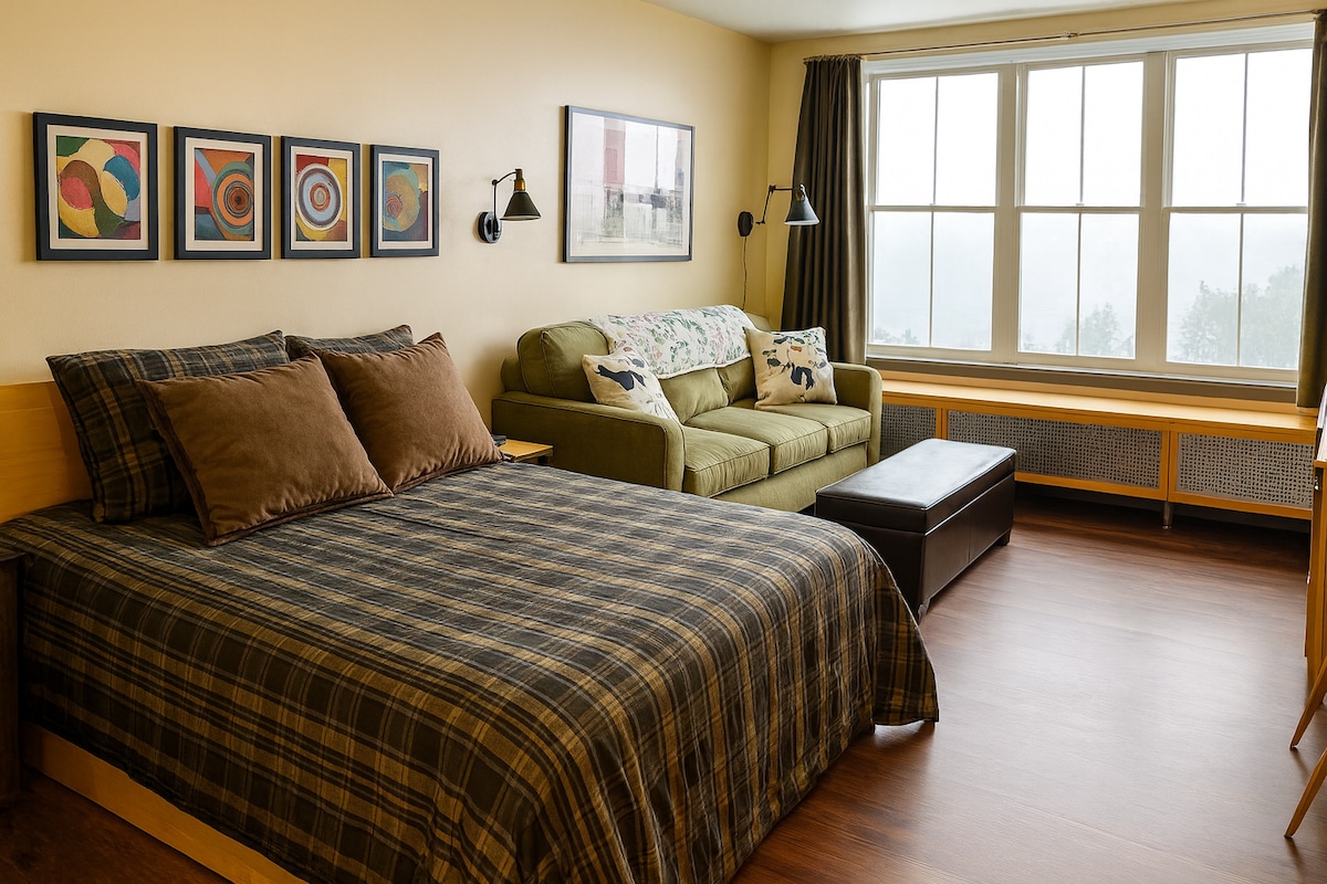 Silver Creek Deluxe Studio apartman za četvoro ljudi. Ovo je nova renovirana jedinica sa bračnim krevetom, kaučem za spavanje nove veličine kraljice i novom kuhinjom koja se sastoji od mikrotalasne rerne, frižidera, šporeta, umivaonika, aparata za kafu, tostera. Ima visok sto sa četiri stolice. Naočare, tanjiri, lonci, kašike, viljuške i noževi. Ima električni kamin sa grejanjem, grejalicu na dasci. Ima kupatilo. Telefon i brzi internet su dostupni. Samostalna prijava uz pametnu bravu bez ključa.
