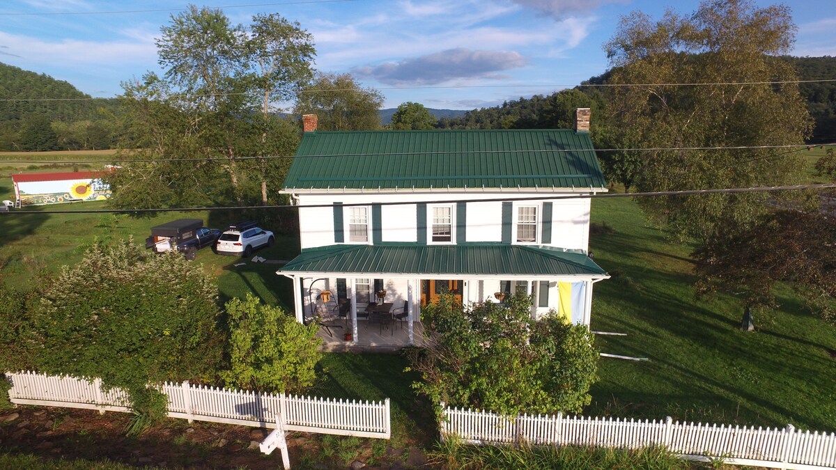 Naša jednosobna seoska kuća sa pristupom reci nalazi se na nekoliko stotina metara iznad reke Grinbrijer, sa mnogo privatnosti. Bračni krevet, kauč na razvlačenje sa bračnim krevetom, sto i stolice, klima-uređaj. Lokacija je savršena za izlete, vožnju biciklom po stazama reke Grinbrier i planinarenje - 10 minuta od staza i ribolova državnog parka Vatoga; 15 minuta od Kranberi Gledesa; sat vremena od Luisburga u VV-u -- koji je proglašen najboljim gradom u Americi pre nekoliko godina. Naš prilaz se nalazi ispred reke, ali ne i sama seoska kuća.