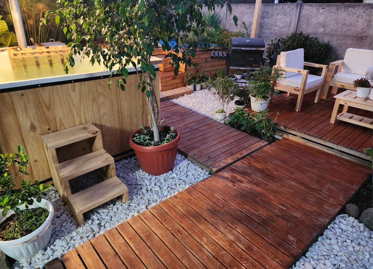 POTPUNA EKSKLUZIVNOST. Privatni bazen. Brvnara za najviše 4 osobe. Pristup i privatni parking. Veliko dvorište, POTPUNO OGRADENO I PRIVATNO. Seosko, tiho područje. Imamo dvorište sa kokoškama koje se slobodno kreću i udaljeni smo samo 9 minuta od prodavnica i dobro smo povezani sa putevima. *Dodatna tegla za toplu vodu. Usluga uz dodatni trošak. Pitajte. *Bazen od 10 metara uključen do 31. marta 2026. Sve je spremno za vas 🏡✨ Rezervišite kod Pabla Moralesa, Super domaćina. Pišite ako imate pitanja.