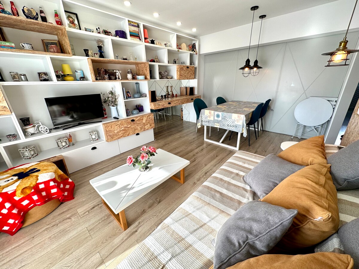 Otkrijte prijatno utočište u najljepšem području Sinaje, Furnici - samo 12 minuta hoda od centra, ali na mirnom i tihom mjestu odmah pored šume. Opustite se na privatnom balkonu i uživajte u veličanstvenom pogledu na planine Bajului i Bucegi. Stan je u potpunosti opremljen za udoban boravak u bilo koje doba godine. Bilo da tražite planinarenje, skijanje ili samo miran odmor, osjećat ćete se kao kod kuće okruženi ljepotom Karpata.