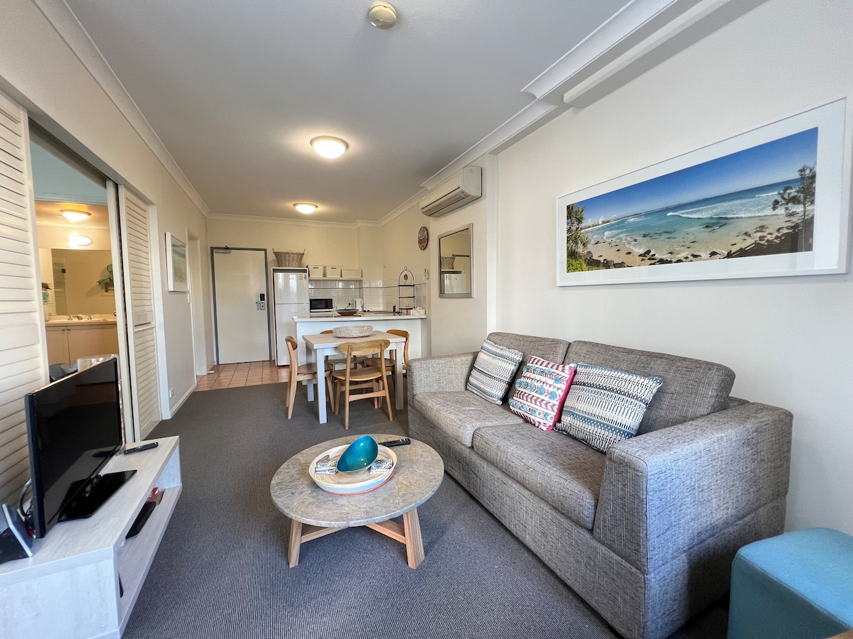 Oaks Gold Coast Calypso Plaza Suites je vrhunski hotel Coolangatta prikladan za porodice samo nekoliko minuta od aerodroma Gold Koust i nalazi se nasuprot prelepe plaže Coolangatta, a odmaralište sa 4,5 zvjezdice ima ogroman bazen, vodene tobogane, teretanu, spa centar na otvorenom, saunu i direktan pristup obali plaže Coolangatta. Naš stan je 1 spavaća soba sa kuhinjom i dnevnim trpezarijom i sopstvenim balkonom.