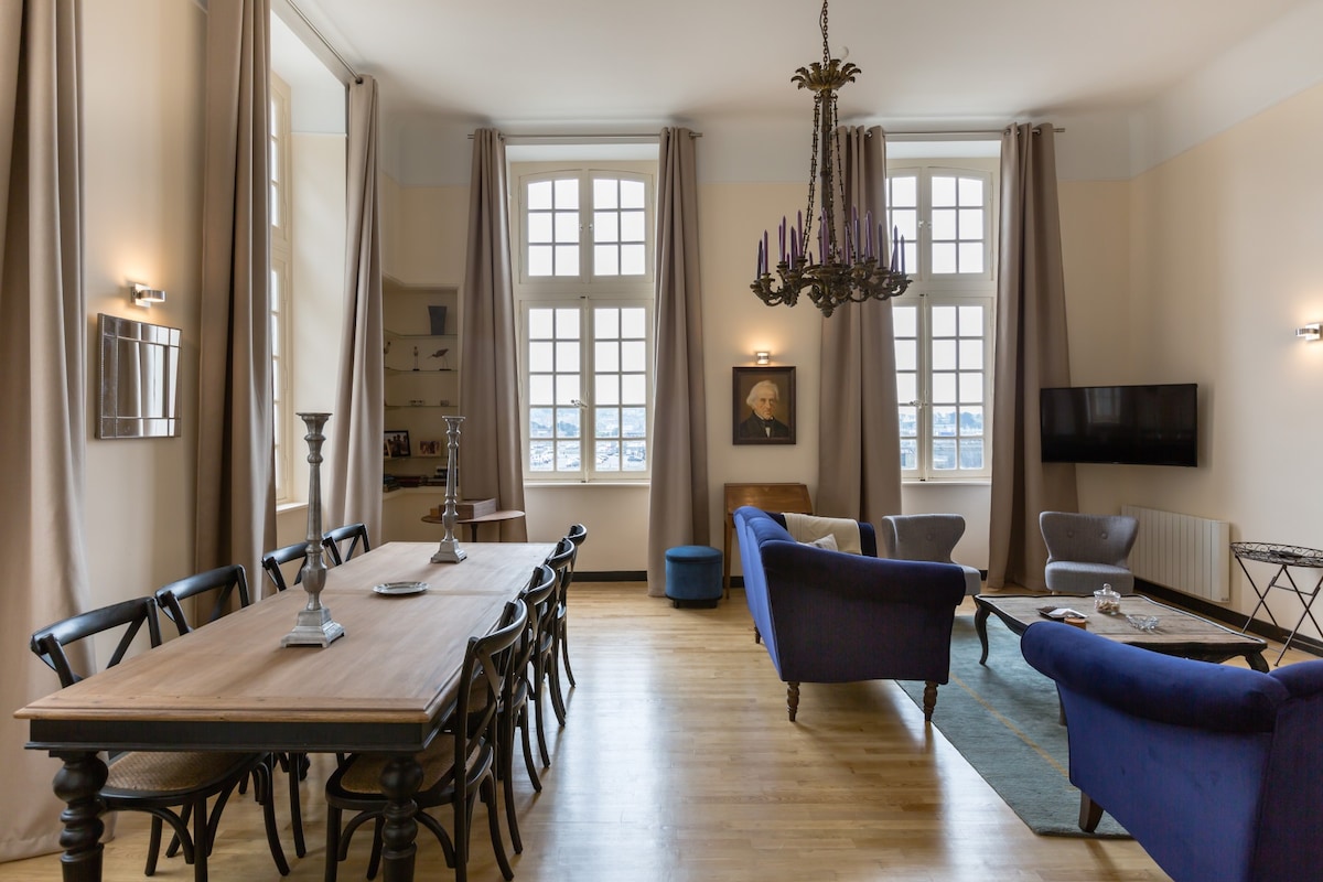 U ambijentu zelenila i mirnoće veličanstvenog dvorca iz 15. veka koji se nalazi na ulazu u naš prelepi srednjovekovni grad Dinan, smestićete se u potkrovlju od 54m2 u prizemlju glavne zgrade. Otkrićete njegov veličanstveni monumentalni kamin i zaljubićete se u ovu autentičnu zgradu, punu istorije sa svim modernim komforima u srcu predivnog parka od 3 hektara sa svojim jezerom samo 15 minuta hoda od istorijskog centra ili 3 minuta besplatnim autobusom.