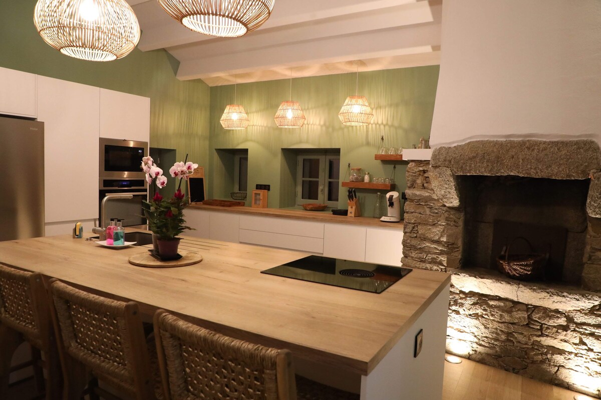 Savršena lokacija - 100 m do plaže. 6 spavaćih soba - 9 kreveta (3 bračna kreveta, 3 kreveta) - idealno za 1 porodicu. 5 minuta vožnje biciklom do prodavnica u Saint Sauveur-u, 7 minuta do Port-Joinvillea. Velika bašta se okružuje suvim kamenim zidovima. Terasa sa baštenskim nameštajem i roštiljem. Sve je novo.