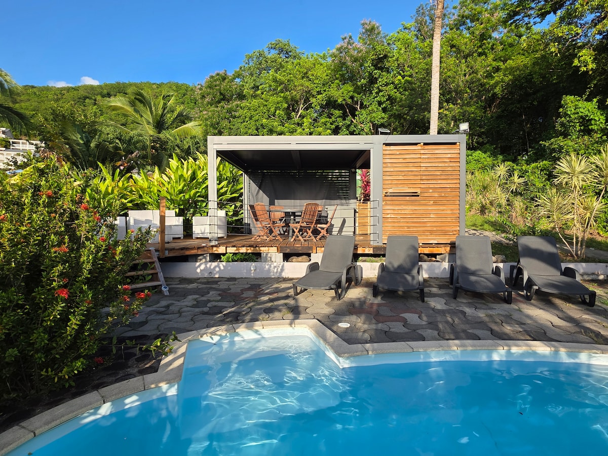 Bienvenue à Carambole et Ananas, votre petit coin de paradis lové au coeur des bananiers. Cet ensemble intimiste de 2 bungalows tout neufs offre une vue magnifique sur l'époustouflante baie de Grande Anse. Idéalement situé sur une propriété privée, à 5 minutes à pied de la plage, sur les premières hauteurs de Deshaies, ils vous garantiront dépaysement, intimité, calme et tranquillité. Venez admirer les sublimes couchers de soleil depuis votre piscine privative en dégustant un savoureux planteur