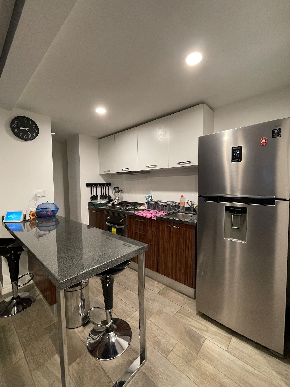 Udoban stan visoke klase koji gleda na „PARQUE ESPAÑA”, jedan od najvećih parkova koji se nalazi u srcu la CONDESA, 2 spavaće sobe na 2. nivou, 2,5 kupatila, radna površina od kvarcnog kamena, ogromno privatno dvorište, mašina za sudove, kamin na alkohol, vešernica, brzi Wi-Fi, besplatan Netflix na 4 pametna televizora Sadržaji se nude! Bazen, teretana, usluga parkiranja, krovni bistro (nije uključen) Obezbjeđenje 24 sata.