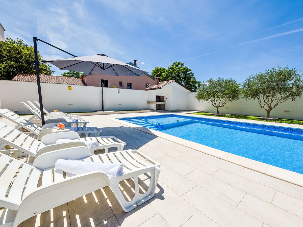 - kuća sa 3 spavaće sobe - 130 m2 - privatni bazen - privatno parking mesto - klima uređaj - klima uređaj u sobama - besplatan Wi-Fi - privatni kamin - lepa terasa - 2,5 km do mora, 2 km do starog grada - besplatni bicikli