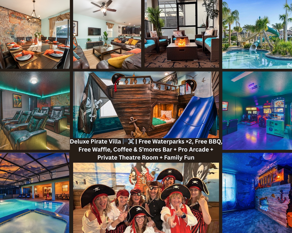 Ahoy, mateys! Welcome to Your Custom-Crafted Pirate Dream Vacation! Among countless vacation rentals, our uniquely themed home offers an unparalleled experience for your family’s ultimate getaway. Every detail is thoughtfully curated to create a relaxing haven for you, while your kids discover adventure and excitement around every corner. We’ve brought the magic of Disney to you, ensuring unforgettable family memories that last a lifetime! Book now and set sail for memories!