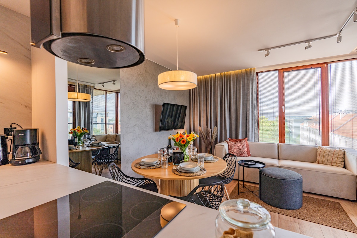 Novouređeni, luksuzni stan u centru Vroclava. Nalazi se na posljednjem spratu stambene zgrade sa liftom. Nalazi se na samo nekoliko minuta hoda (400 metara) do Trga pijace Vroclav. Odlično mjesto za porodice i ljude koji traže mir i udobnost u jedinstvenom enterijeru. Balkon s pogledom na grad. Besplatan svjetlovodni internet, 4K SMART TV od 55", klima-uređaj. Besplatno parking mjesto u podzemnoj garaži pod nadzorom.