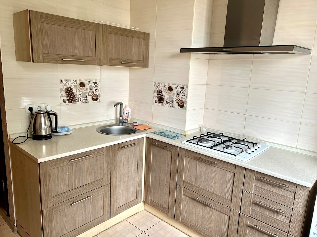 1-sobni udoban, čist stan u samom centru u blizini Corps Gardena. Nalazi se u novoj neboderi u blizini gradske stanice za prevoz. U blizini se nalazi stadion „Vorskla”, teretana, bašta na trupu, apoteke, banke. U blizini ima mnogo restorana i kafića u kojima možete imati veoma ukusan ručak ili prijatno veče